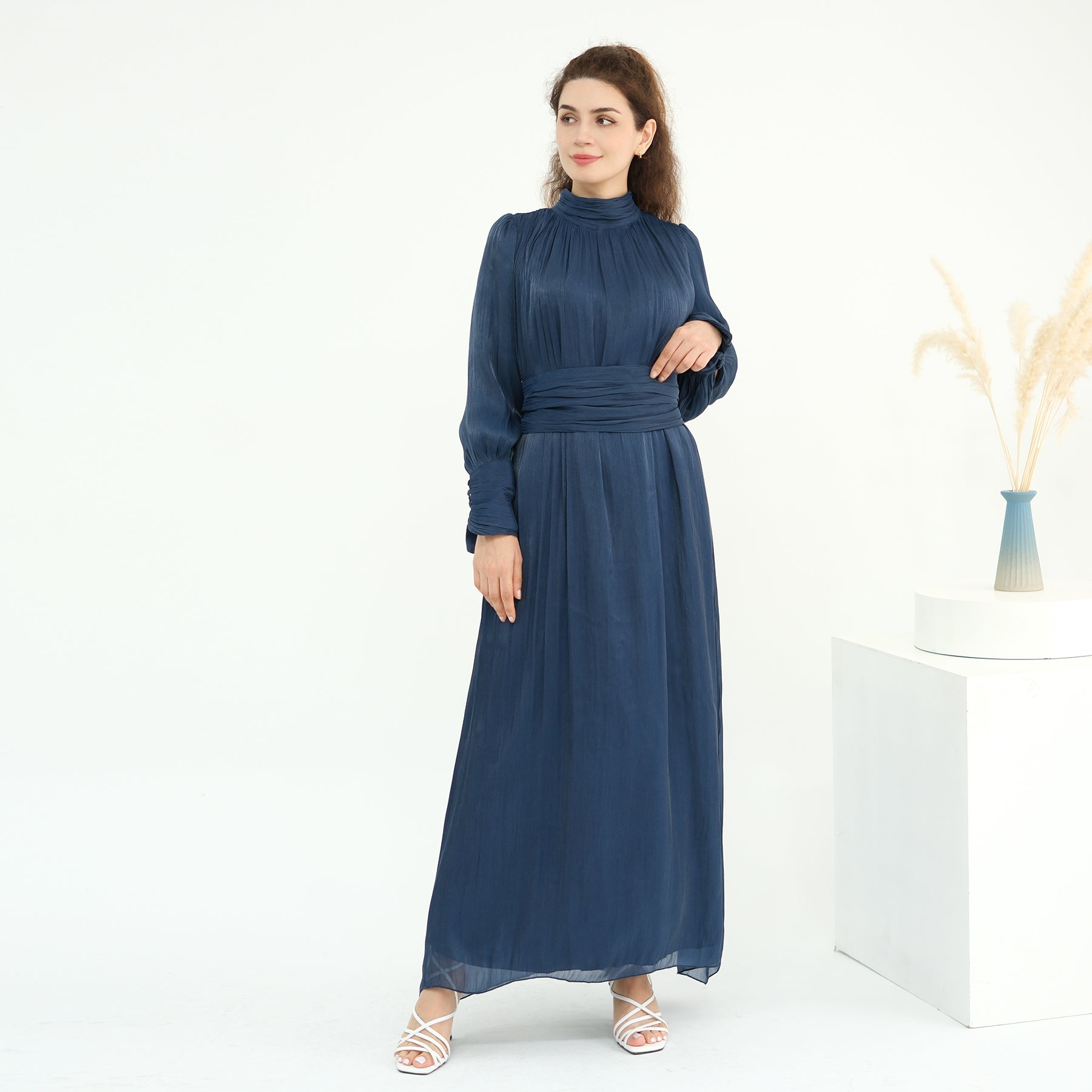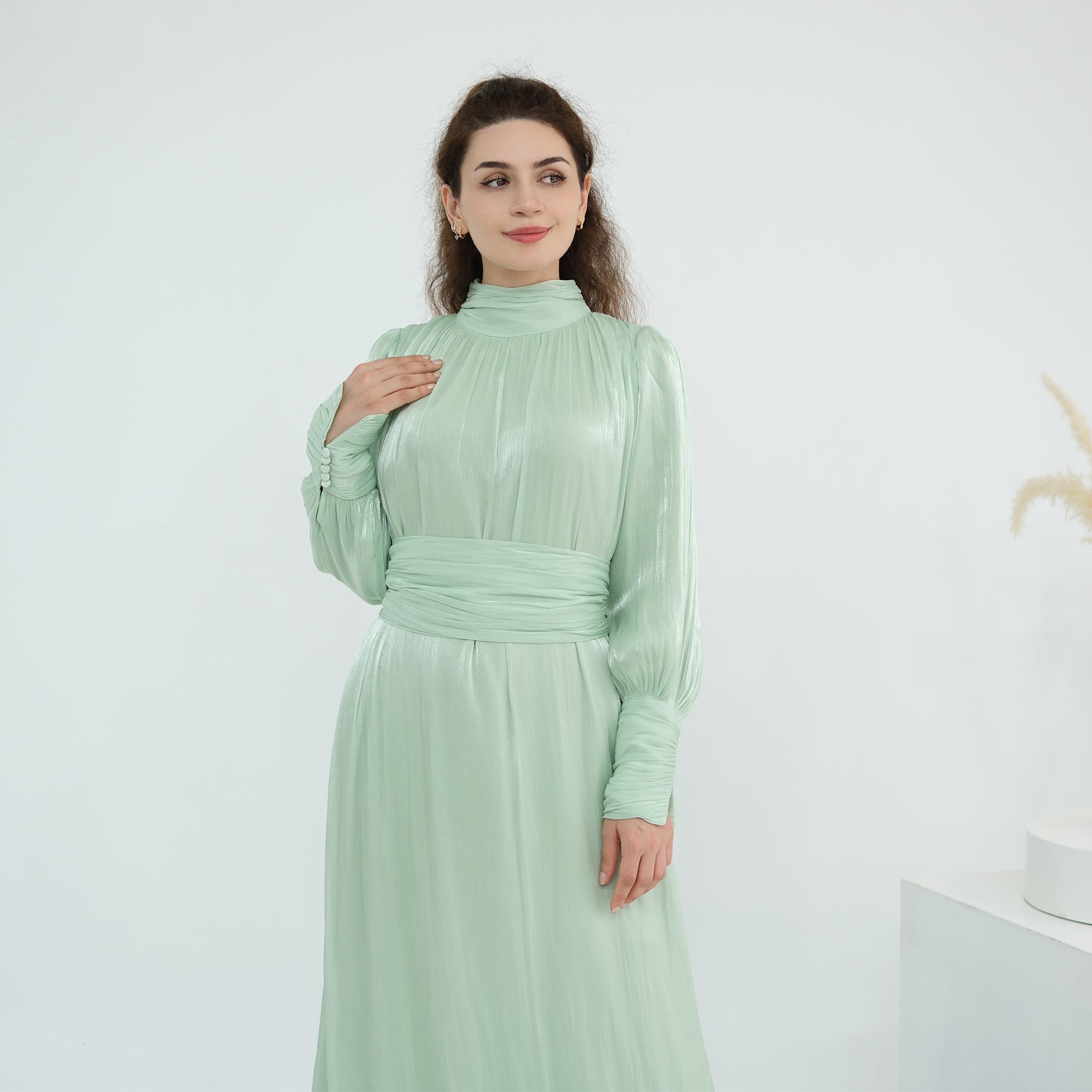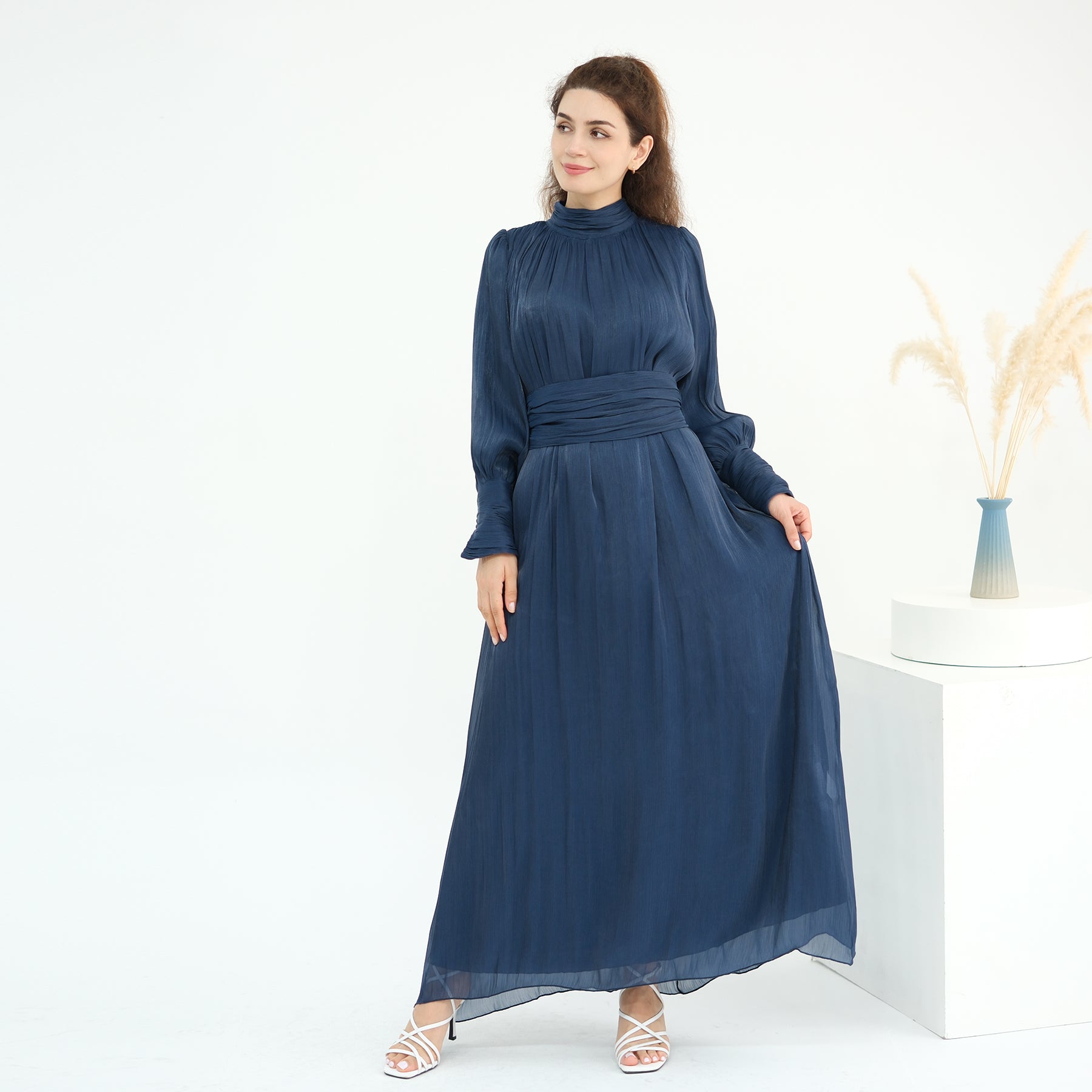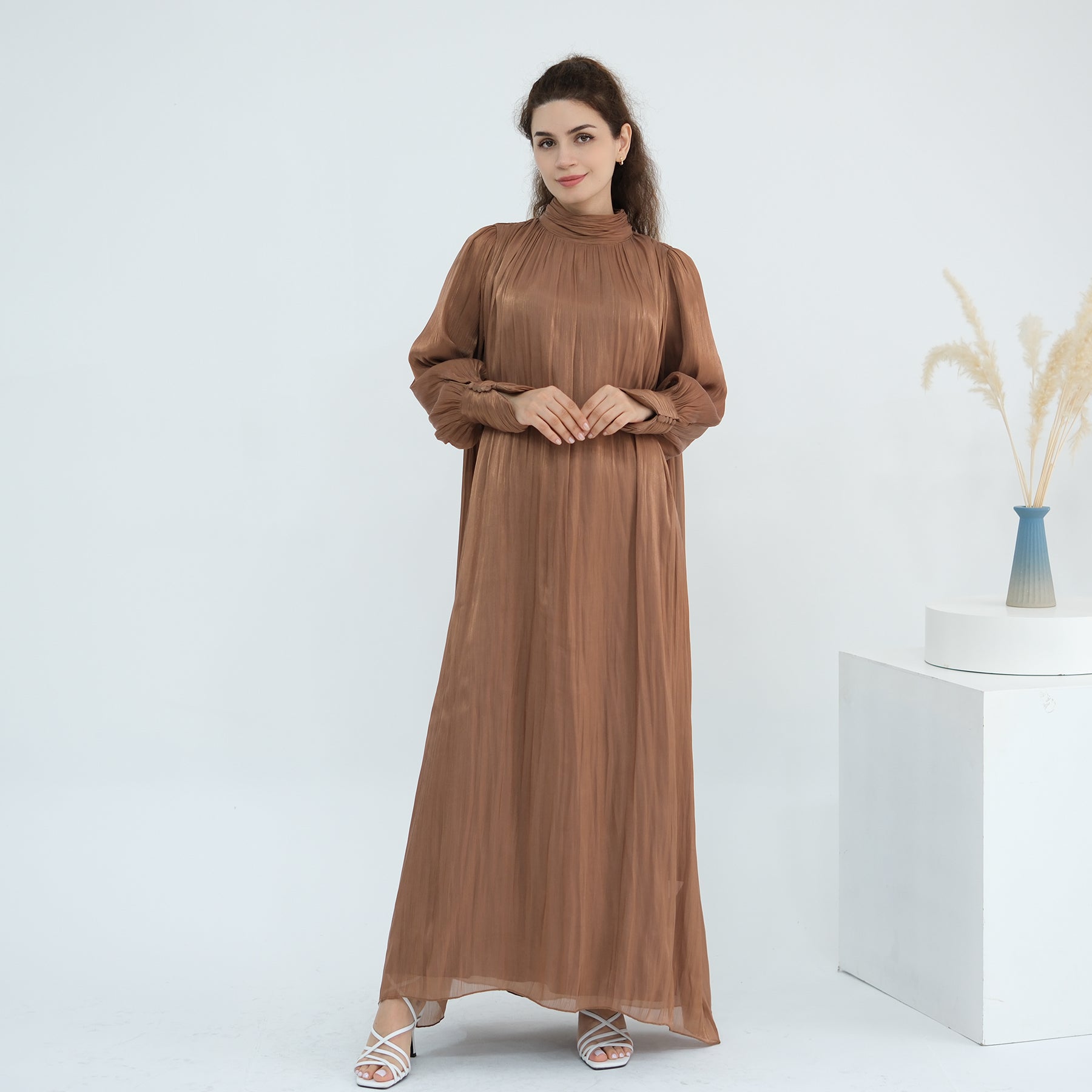 Introducing the Alicia Maxi Dress - a timeless blend of elegance and modesty designed for the modern woman. Crafted from a soft, lightweight shiny polyester fabric, this piece flows effortlessly with every step, giving you that understated glow in natural light. Featuring a flattering high neckline and full-length flared hem, the Alicia dress elongates your silhouette while maintaining all-day comfort.