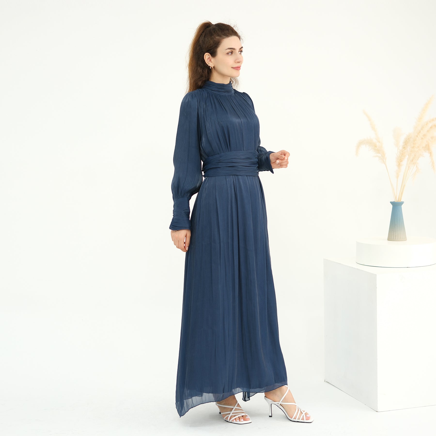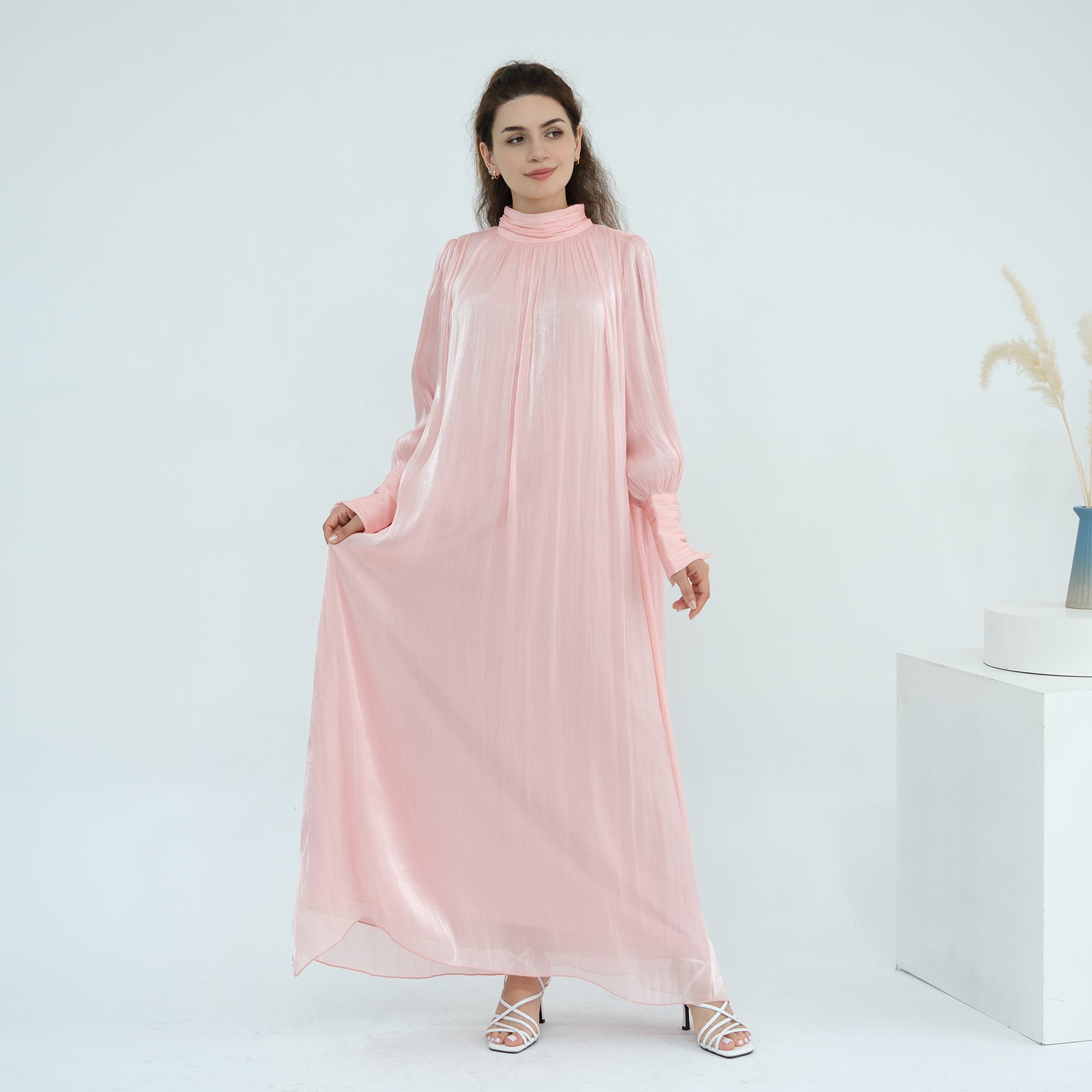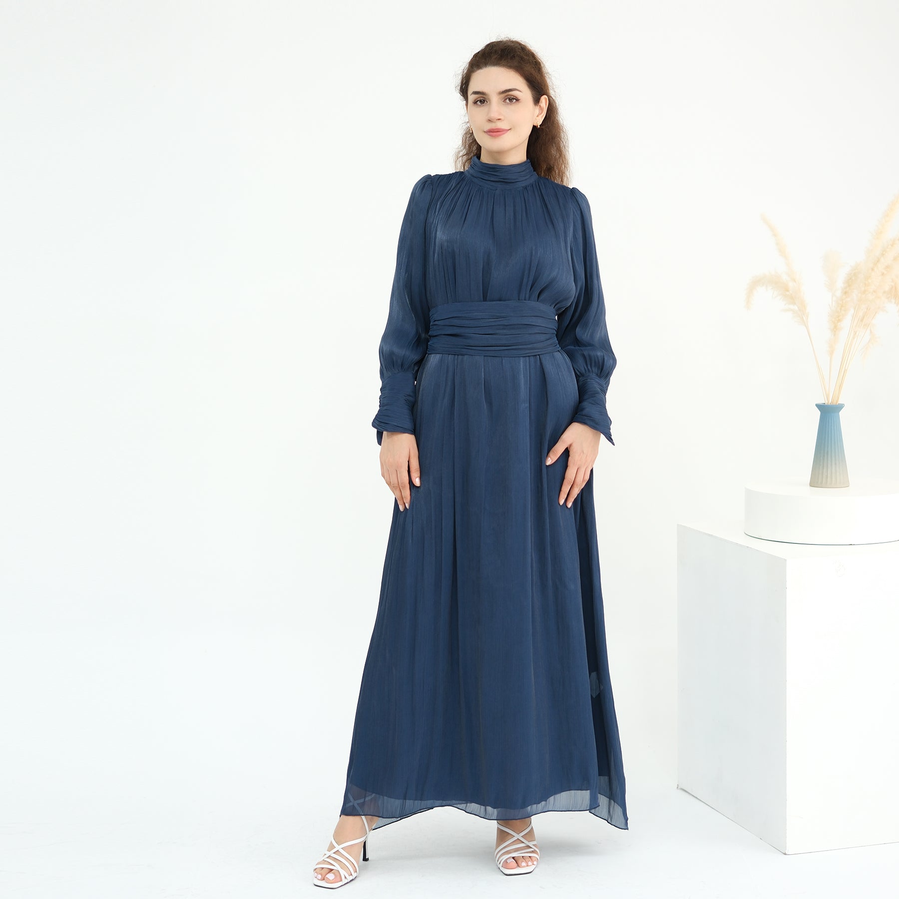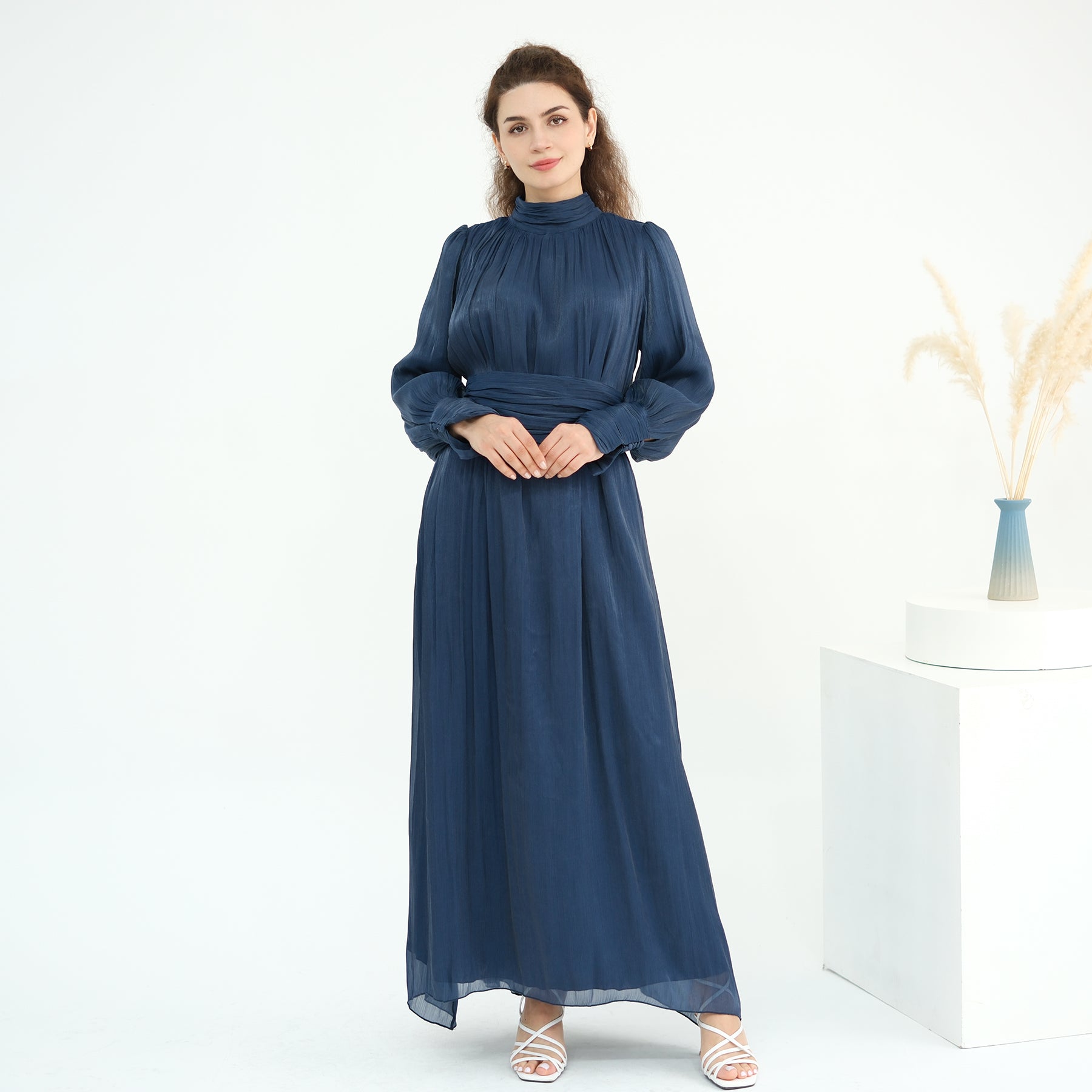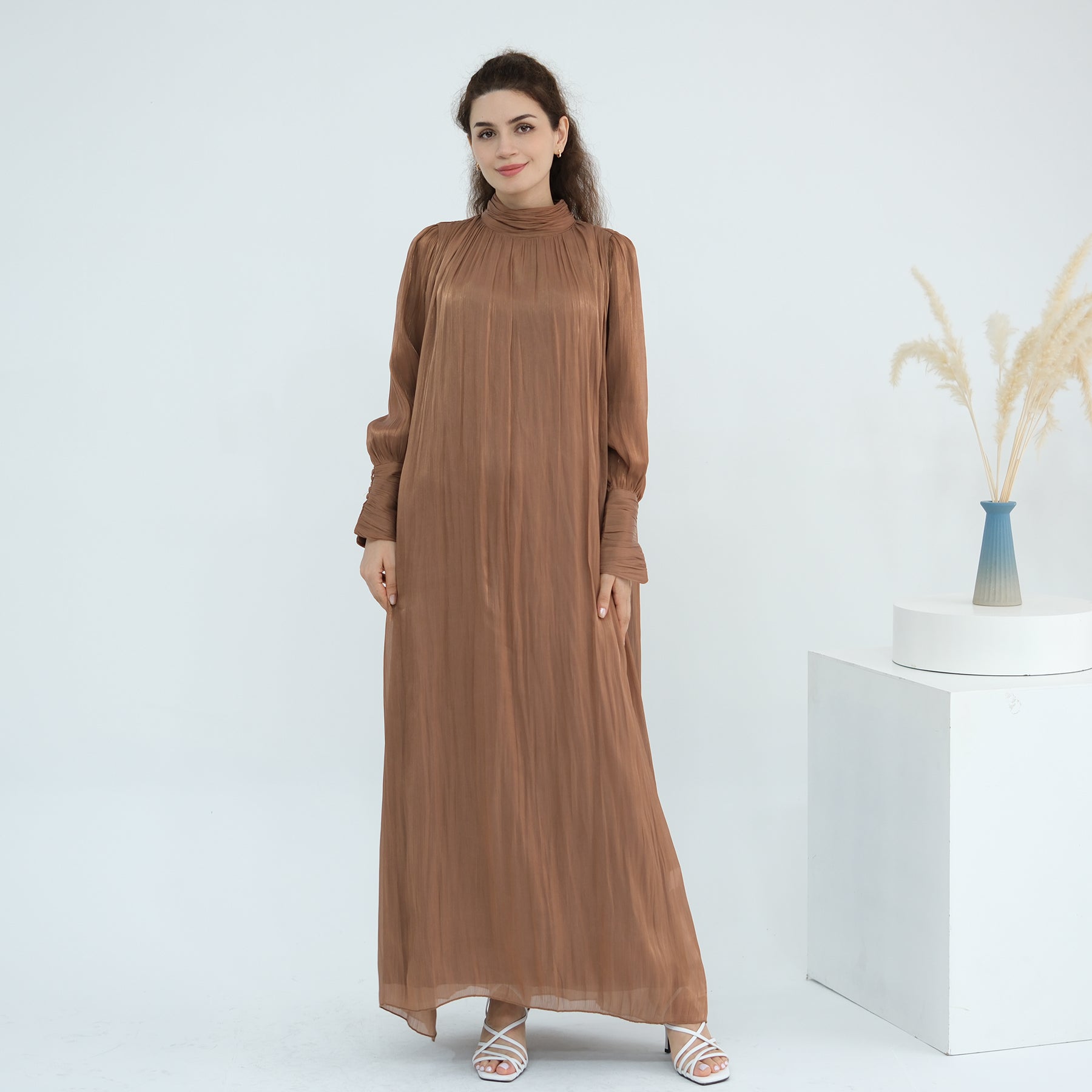 Introducing the Alicia Maxi Dress - a timeless blend of elegance and modesty designed for the modern woman. Crafted from a soft, lightweight shiny polyester fabric, this piece flows effortlessly with every step, giving you that understated glow in natural light. Featuring a flattering high neckline and full-length flared hem, the Alicia dress elongates your silhouette while maintaining all-day comfort.