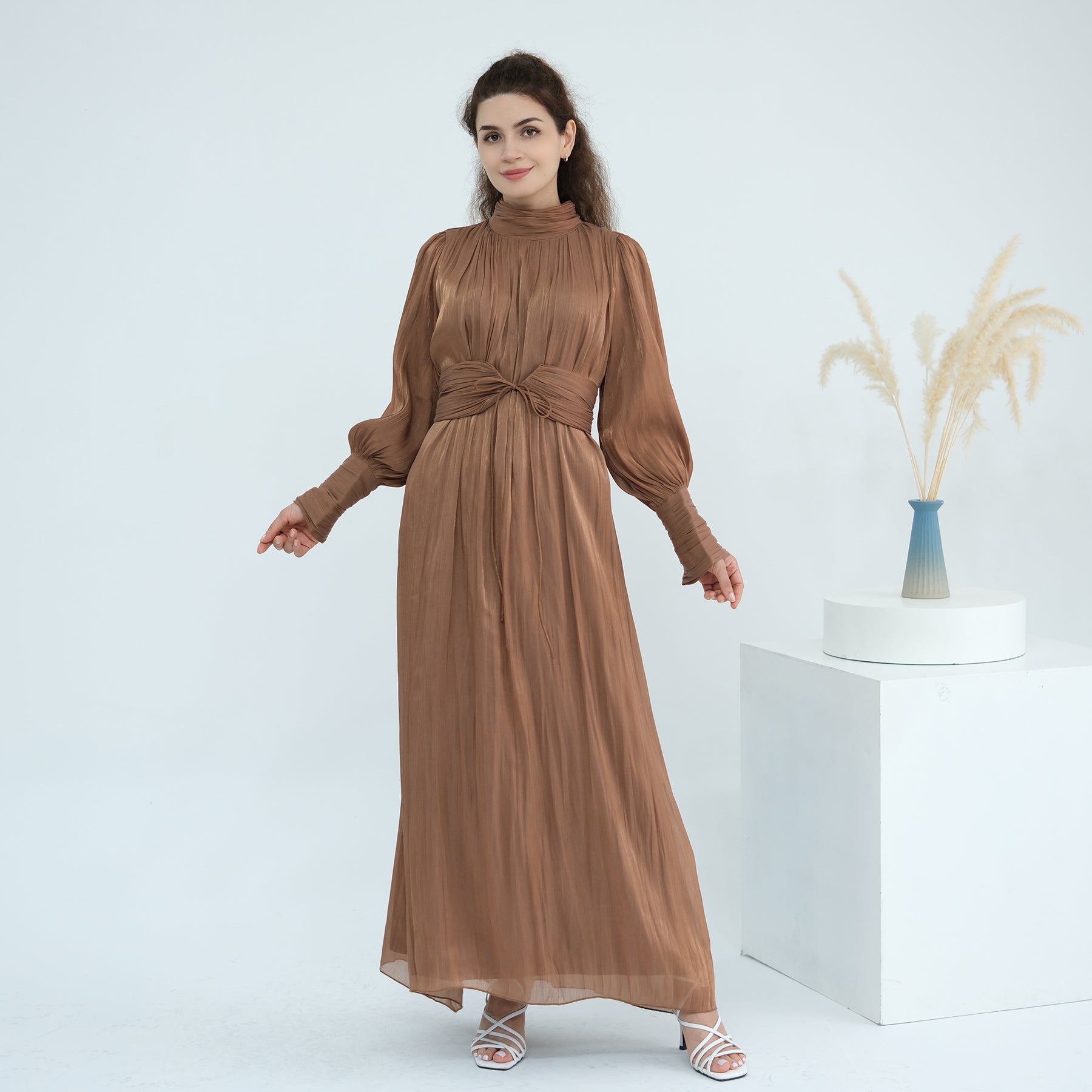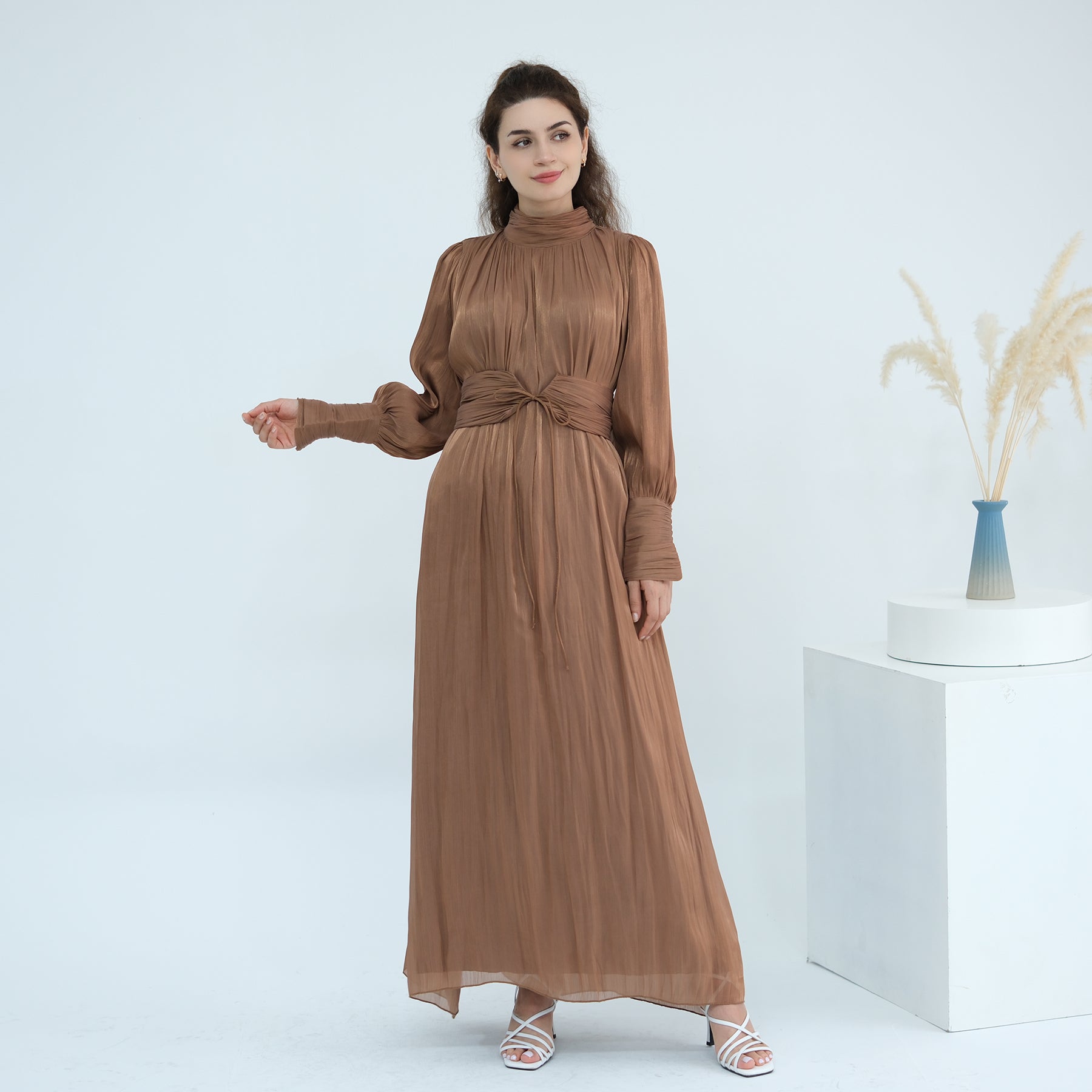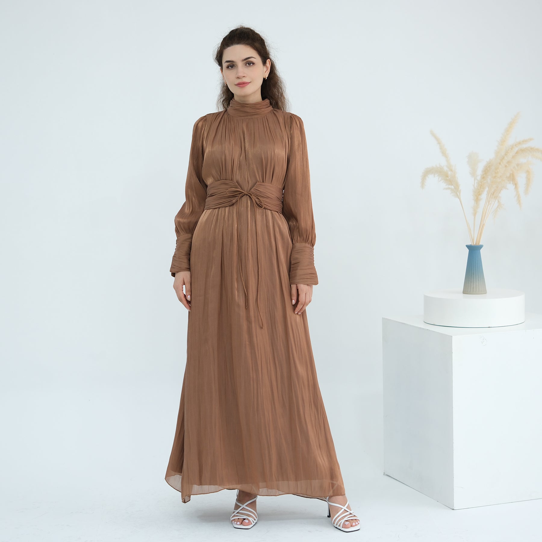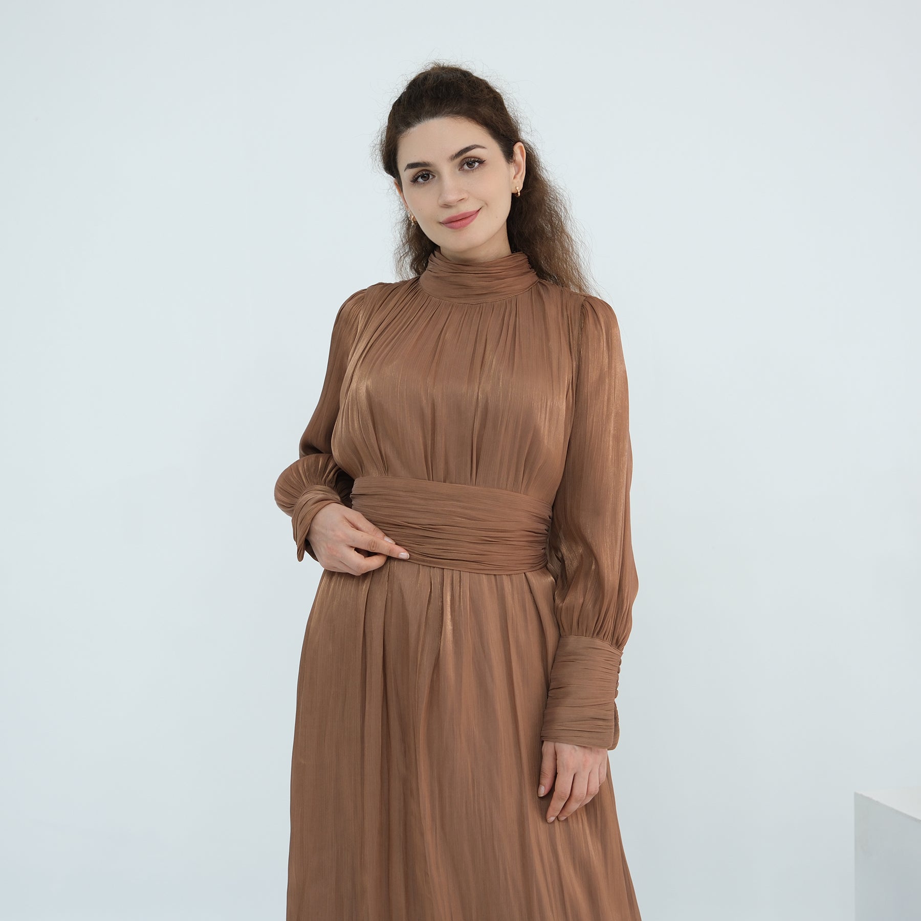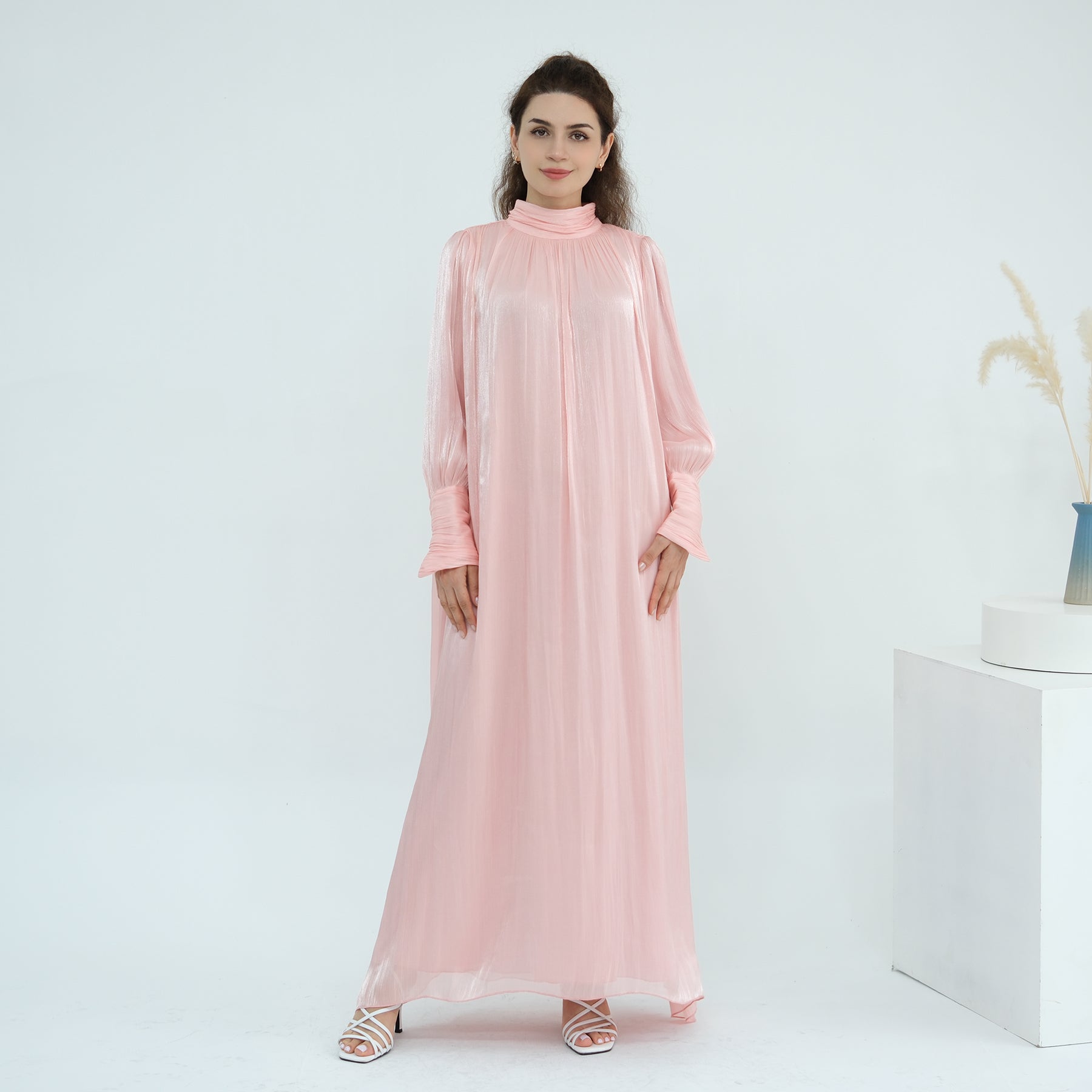 Introducing the Alicia Maxi Dress - a timeless blend of elegance and modesty designed for the modern woman. Crafted from a soft, lightweight shiny polyester fabric, this piece flows effortlessly with every step, giving you that understated glow in natural light. Featuring a flattering high neckline and full-length flared hem, the Alicia dress elongates your silhouette while maintaining all-day comfort.