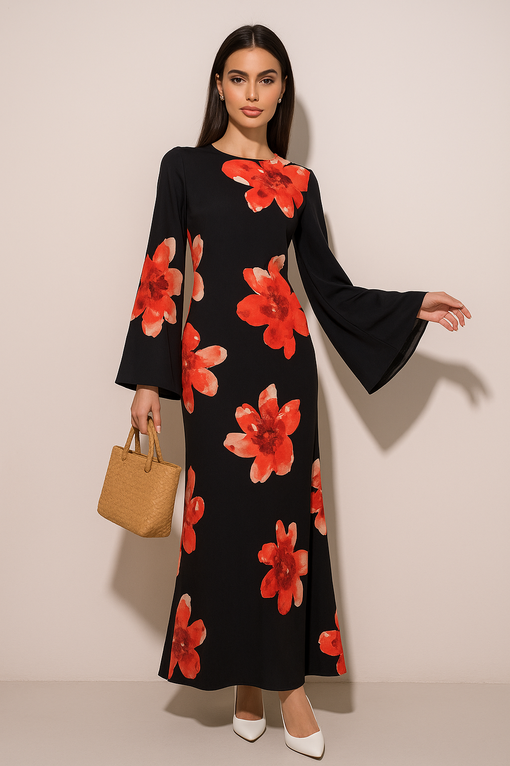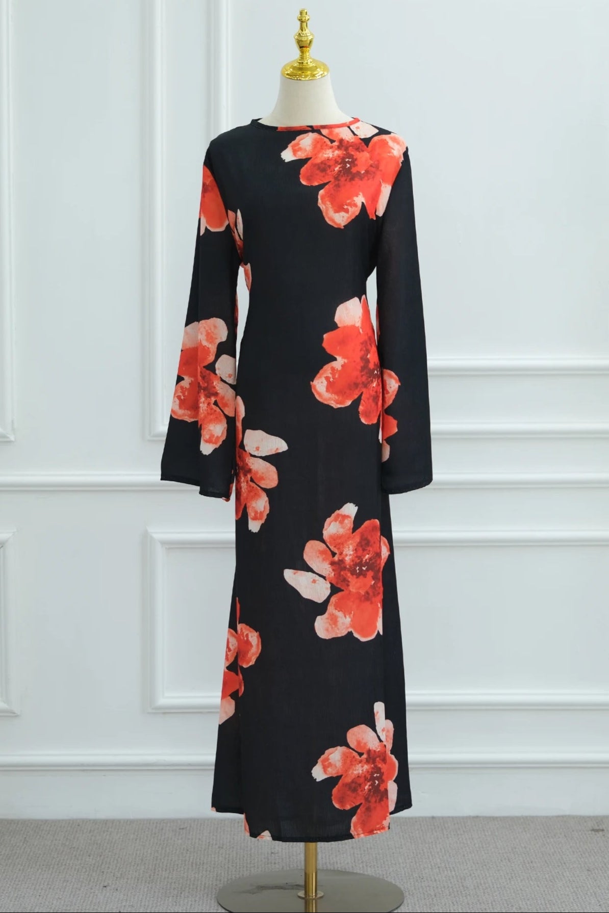 Meet the Kaia Modest Dress, timeless elegance with this floral statement dress — designed to leave a lasting impression without sacrificing comfort. Featuring a soft base adorned with bold floral prints, this piece combines a clean silhouette with an artistic edge that feels both elevated and wearable.