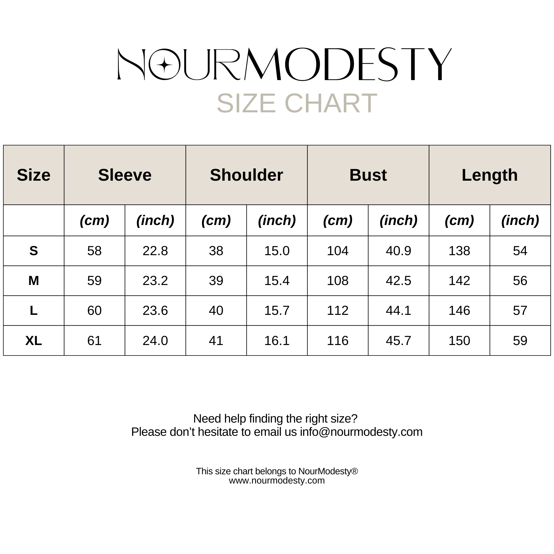 Our Abayas and Dresses are available in sizes S-XXL. For the best fit, refer to the size chart.